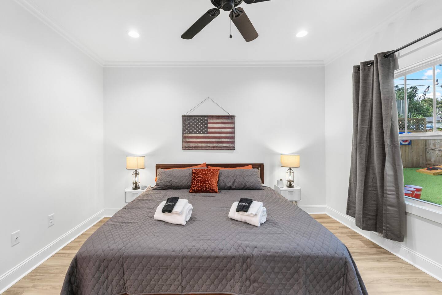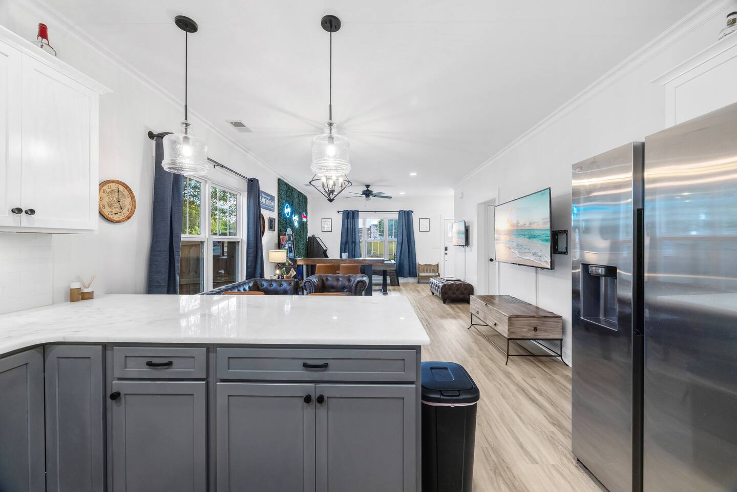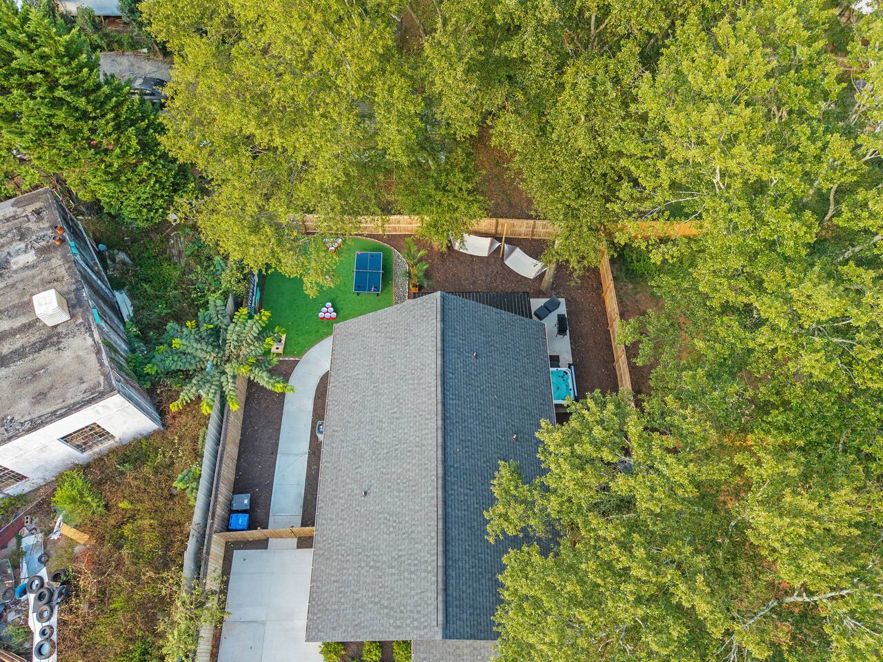 WHY GUESTS LOVE RESERVE 101 ✔ Boutique, bourbon-inspired design with warm Southern character ✔ Private hot tub, hammocks & multiple outdoor TVs ✔ Full arcade lineup: Skeeball, air hockey, arcade classics & ping pong ✔ Game nook + photo wall for memory-making moments ✔ Open-concept layout built for gathering ✔ Covered patio, fire pit & Blackstone grill ✔ Professionally cleaned with hotel-quality linens ✔ Thoughtfully curated amenities for every guest Reserve 101 is designed for guests who value quality time, intentional spaces, and a polished, memorable stay. THE SPACE ✔ Sleeps up to 8 across 3 thoughtfully designed bedrooms ✔ Boutique, bourbon-inspired interior styling ✔ Open-concept layout built for gathering ✔ Roku Smart TVs throughout (indoor + outdoor) ✔ Professionally cleaned with hotel-quality linens ✔ Curated amenities and intentional layout LIVING & GATHERING SPACES ✔ Open-concept living room with sightlines to kitchen & game nook ✔ 65” + 43” Smart TVs ✔ Bourbon lounge sofa & accent chair ✔ Kitchen bar seating + custom 4-seat social bar ✔ Ideal for movie nights, game nights & conversation KITCHEN & BAR SEATING ✔ Full-size stainless steel appliances ✔ Nespresso + Keurig + drip coffee maker ✔ Blender, toaster, cookware & utensils ✔ Cocktail shaker, bourbon & wine glassware ✔ Full 30-spice rack + pantry essentials ✔ Bar seating for 5, open to living space BEDROOMS & SLEEPING ✔ Primary Suite: King bed, nightstands, dresser, en-suite bath ✔ Guest Bedroom 1: Queen bed with quiet layout ✔ Guest Bedroom 2: Two twin bunk beds (4 total) — ideal for kids or groups ✔ Roku Smart TV + blackout curtains in every bedroom ✔ Soft, breathable linens provided BATHROOMS ✔ Two full bathrooms ✔ Walk-in shower with rain head in primary en-suite ✔ Tub/shower combo + bidet attachment in hall bath ✔ Plush bath towels, bath sheets & makeup towels ✔ Shampoo, conditioner & body wash provided ✔ Hair dryer, iron & ironing board included GAME NOOK & PHOTO WALL ✔ Full-size Skeeball machine ✔ Full-size air hockey table ✔ Multi-game arcade cabinet (casino classics + retro favorites) ✔ Moody lighting & lounge finishes ✔ Custom photo wall — camera-ready for your crew OUTDOOR LIVING (PRIVATE & FENCED) ✔ Private hot tub ✔ Covered patio with full-day shade ✔ 65” outdoor TV on patio + 43” TV on deck ✔ Hammocks for slow mornings & soft evenings ✔ Large turf hangout zone ✔ Cornhole, axe throwing, ping pong, jumbo Connect 4, yard pong ✔ Blackstone grilling station ✔ Two tabletop Solo Stoves (s’mores-ready) ✔ Fire pit with oversized seating LAUNDRY & ESSENTIALS ✔ Washer & dryer ✔ Laundry detergent & supplies provided ✔ Central heat & air ✔ Smart lock self check-in PET-FRIENDLY (WITH FEE) ✔ Well-behaved dogs welcome ✔ Fully fenced yard ✔ $119 non-refundable pet fee per pet LOCATION HIGHLIGHTS ✔ 2 min to Cherrydale dining & shopping ✔ 5 min to Swamp Rabbit Trail & Travelers Rest ✔ 7 min to Downtown Greenville & Falls Park ✔ 8 min to Bon Secours Arena & Unity Park ✔ 20 min to GSP International Airport ✔ Easy day trips to Asheville, Hendersonville, Clemson & Charlotte IDEAL FOR ✔ Couples ✔ Families ✔ Friend groups ✔ Game nights & celebrations ✔ Weekend getaways & resets IMPORTANT NOTES ✔ Professionally maintained with same-day turnovers ✔ Designed for comfort, cleanliness & respectful stays ✔ Not a party or event property ✔ Please review house rules prior to booking Reserve 101 isn’t just a stay — it’s a Greenville reset, poured neat. Small-batch comfort. Thoughtfully curated. Built for connection.
