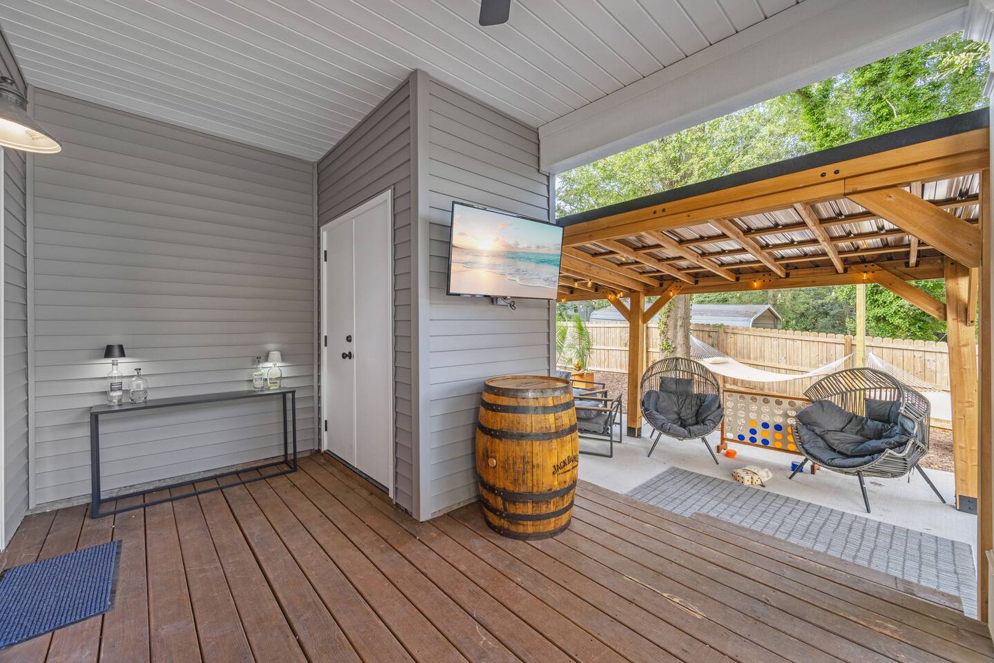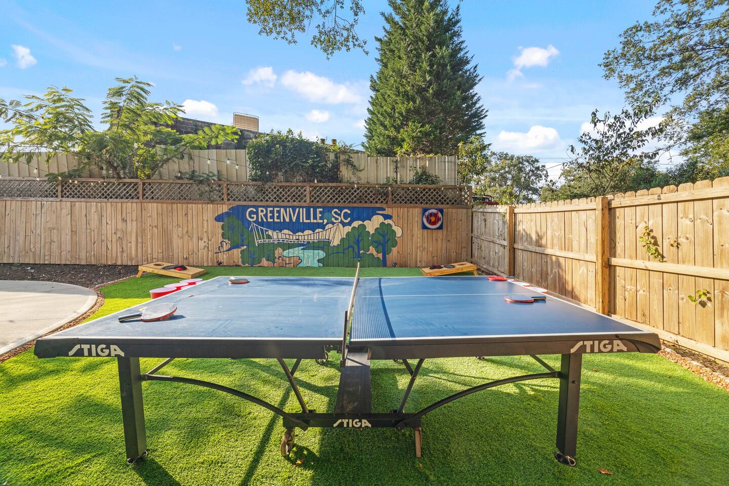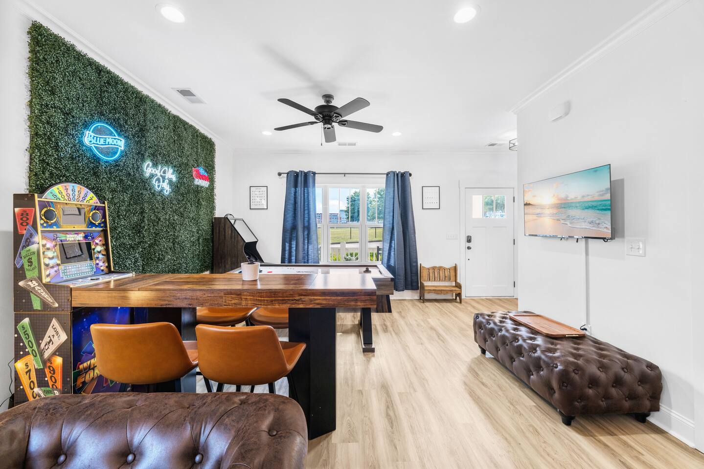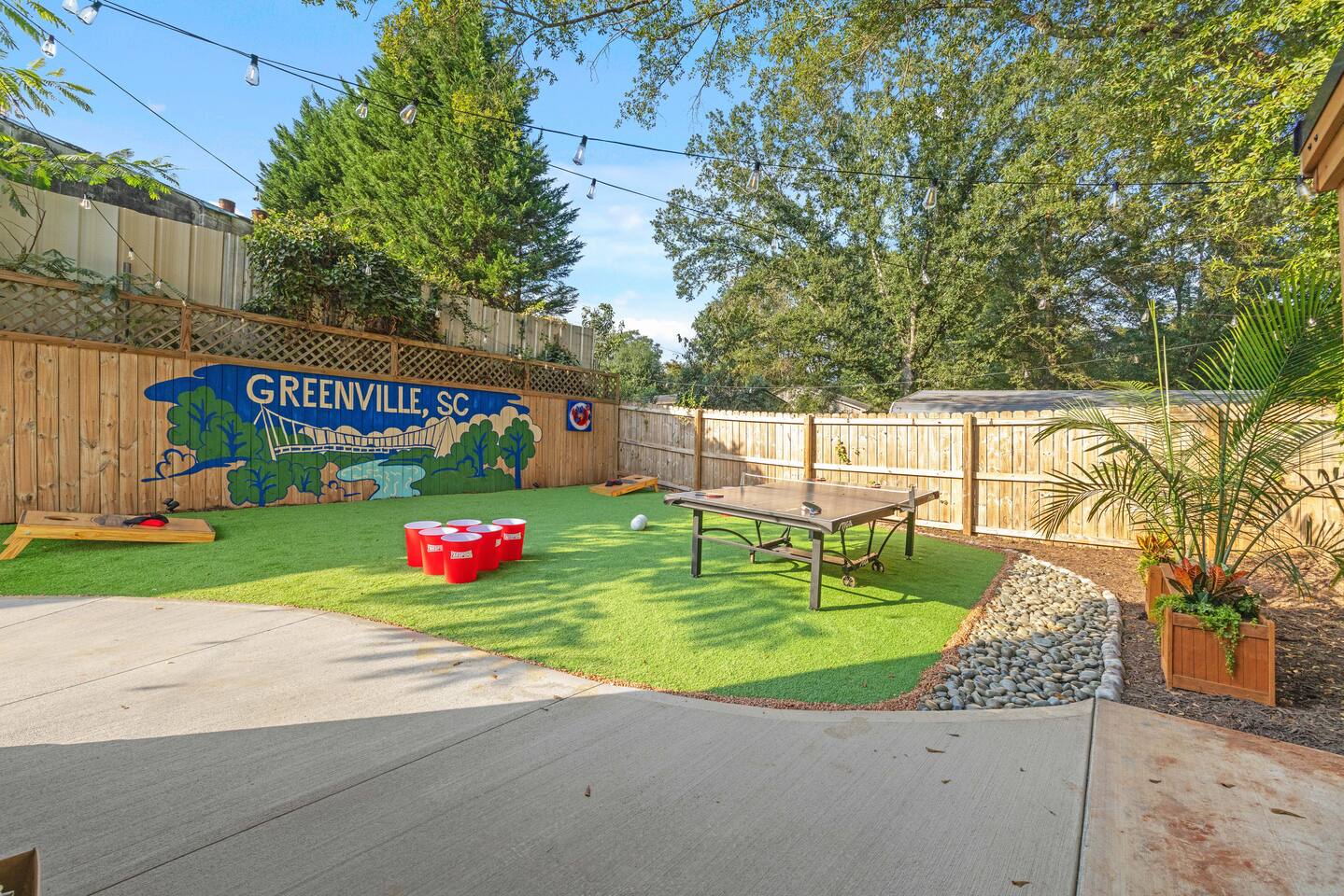 Welcome to Reserve 101 — a small-batch Southern stay just minutes from downtown Greenville. This 3BR/2BA boutique retreat features a private hot tub, covered patio, outdoor TVs, hammocks, and a full lineup of games including Skeeball, air hockey, arcade classics, and ping pong. Inside, enjoy curated gathering spaces, Roku TVs, and a warm, bourbon-inspired design. Crafted for rest, connection, and a little friendly competition — this is your Greenville reset, poured neat.