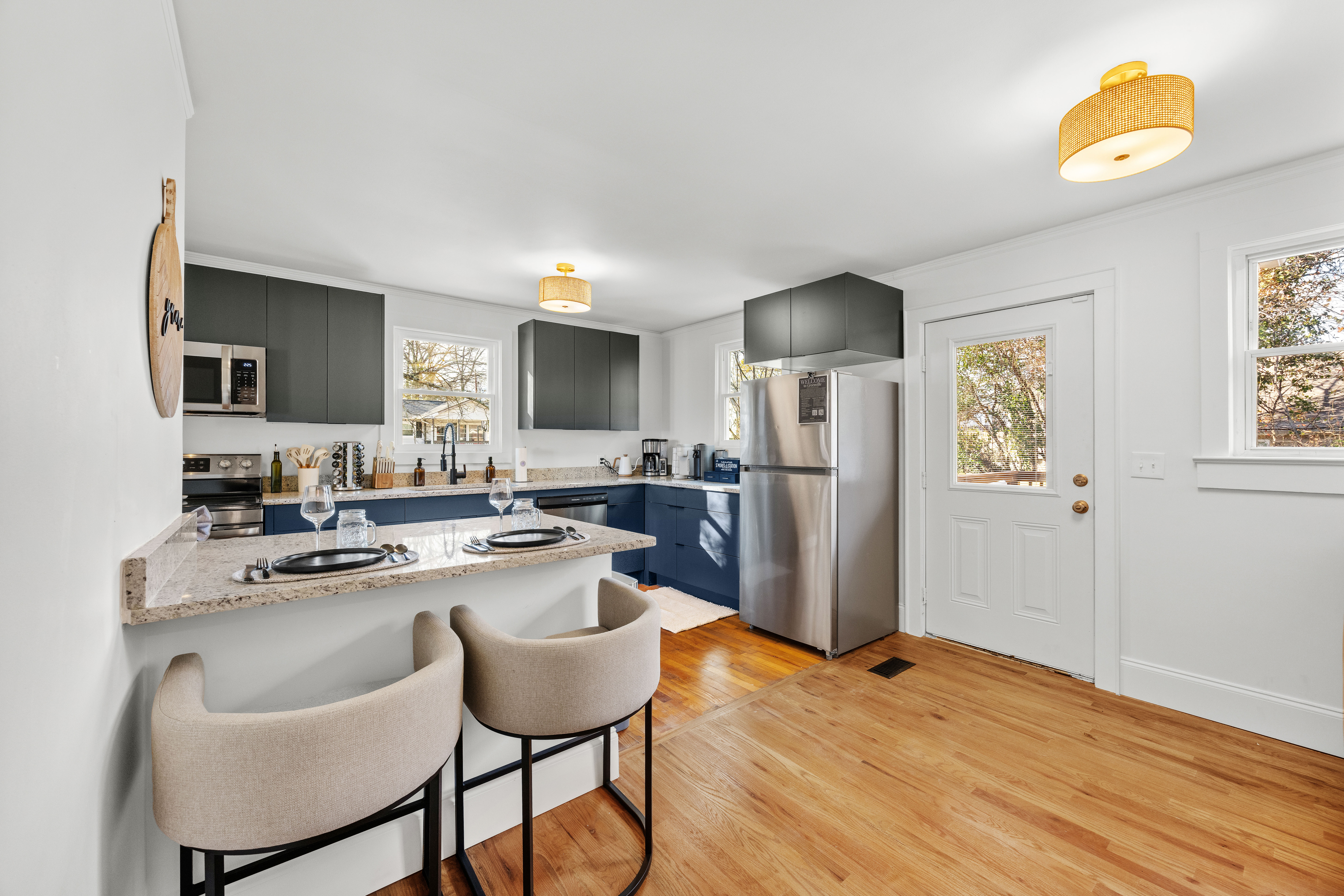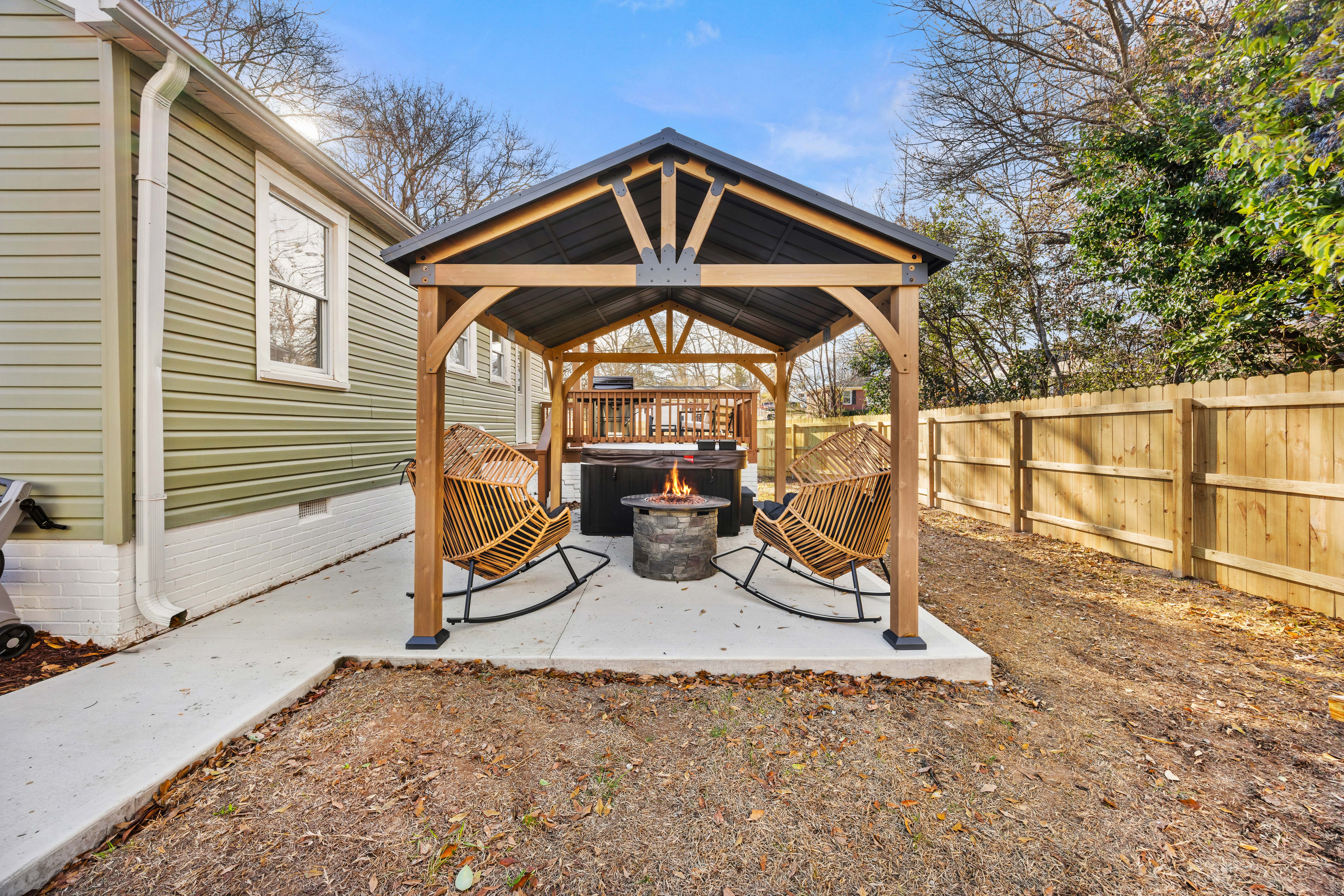 WHY GUESTS LOVE THE WELL ✔ True boutique wellness retreat designed for rest & renewal ✔ King suite with luxury linens and spa-inspired details ✔ Dedicated office + yoga & wellness room ✔ Massage chair, hot tub & curated wellness amenities ✔ Fully fenced, private backyard with calming outdoor spaces ✔ Thoughtfully stocked kitchen with matcha, espresso & wellness tools ✔ Quiet neighborhood just minutes from downtown Greenville ✔ Immaculately cleaned and intentionally maintained The Well is for guests who value calm, quality, and care — not crowds or chaos. THE EXPERIENCE ✔ Spa-inspired, thoughtfully restored wellness retreat ✔ Designed for intentional stays, not high-traffic hosting ✔ Ideal for professionals, couples, and quiet family visits ✔ Every detail curated for rest, clarity & comfort This is not a typical stay — it’s a reset. SLEEPING & LAYOUT Primary Bedroom: ✔ King bed with premium mattress, Turkish cotton sheets, luxury pillows ✔ 50” Roku Smart TV, ceiling fan, dresser & nightstands Dedicated Office + Wellness Room: ✔Full-size desk with 27” curved monitor + docking station ✔Office chair, massage chair, massage gun ✔Yoga mats, blocks, foam roller, stretch bands & mirrors ✔32” Roku Smart TV Living Room: ✔Comfortable sofa seating (accommodates a 3rd guest if needed) ✔65” Roku Smart TV ✔Original whitewashed fireplace ✔Vinyl record player + Polaroid photo wall KITCHEN & DINING ✔ Fully stocked for real living, not bare-minimum stays ✔ Nespresso machine with frother ✔ Keurig + drip coffee maker ✔ Matcha kit ✔ Air fryer, crock pot, rice cooker, blender & toaster ✔ Full cookware set, bakeware & utensils ✔ Sleek black dishware & full glassware set ✔ Two barstools for casual meals ✔ Dishwasher, stove/oven, microwave & full-size fridge ✔ Maytag washer & dryer conveniently located in kitchen ✔ Wine, mule, champagne, and bourbon glasses OUTDOOR OASIS (PRIVATE & FENCED) ✔ Fully fenced backyard designed for peace & privacy ✔ 12x15 gazebo with café lighting ✔ Private hot tub with ample jets & seating ✔ Covered patio seating ✔ Propane fire pit ✔ Deck with grilling station & additional seating ✔ Custom cornhole boards & croquet set ✔ Soft, ambient outdoor lighting LUXURY & WELLNESS TOUCHES ✔ Plush luxury robes (his & hers) ✔ Premium Turkish sheets & pillows ✔ UGG throw blankets ✔ Massage gun & wellness tools ✔ Curated wellness amenity kits ✔ Vegan, eco-friendly Ginger Lily Farms bath & kitchen products ✔ Clean, scent-free laundry detergent ✔ Breakfast-in-bed trays & TV trays ✔ Vinyl record player & Polaroid camera wall Every stay is provisioned with care. THE HOME ✔ Built in the 1960s and thoughtfully remodeled ✔ Original hardwood floors & doors preserved ✔ Modern luxury layered onto historic character ✔ Grounded, warm, and intentionally restored LOCATION ✔ Quiet historic neighborhood in Greenville’s West End ✔ 8 minutes to Downtown Greenville, Falls Park & Main Street ✔ Easy access to hospitals, offices, dining & trails ✔ Virtual guestbook with curated local recommendations IDEAL FOR ✔ Professionals & traveling healthcare workers ✔ Couples seeking rest & reconnection ✔ Focused work trips ✔ Wellness-forward travelers ✔ Quiet family visits PET-FRIENDLY (WITH FEE) ✔ Well-behaved dogs welcome ✔ Fully fenced yard ✔ $119 non-refundable pet fee per pet IMPORTANT NOTES ✔ Professionally maintained with same-day turnovers ✔ Designed for calm, respectful stays ✔ Not a party or event property ✔ Please review house rules prior to booking The Well isn’t just where you stay — it’s where you reset. Quiet luxury. Intentional design. Restored with care.