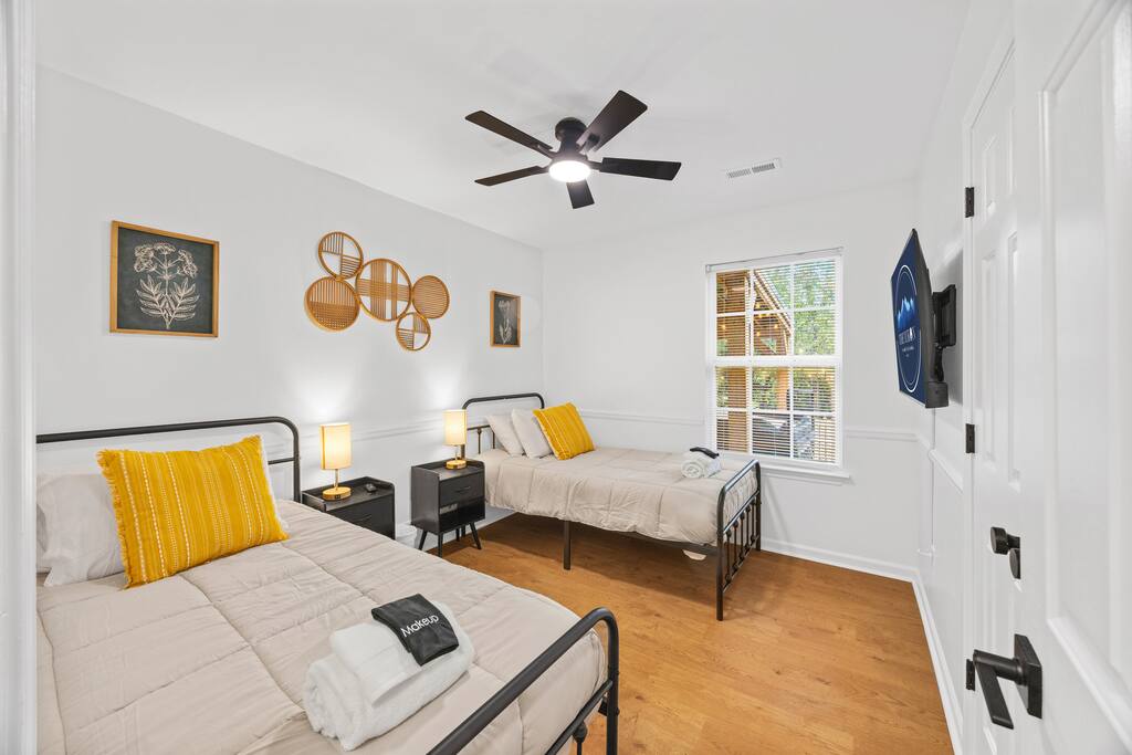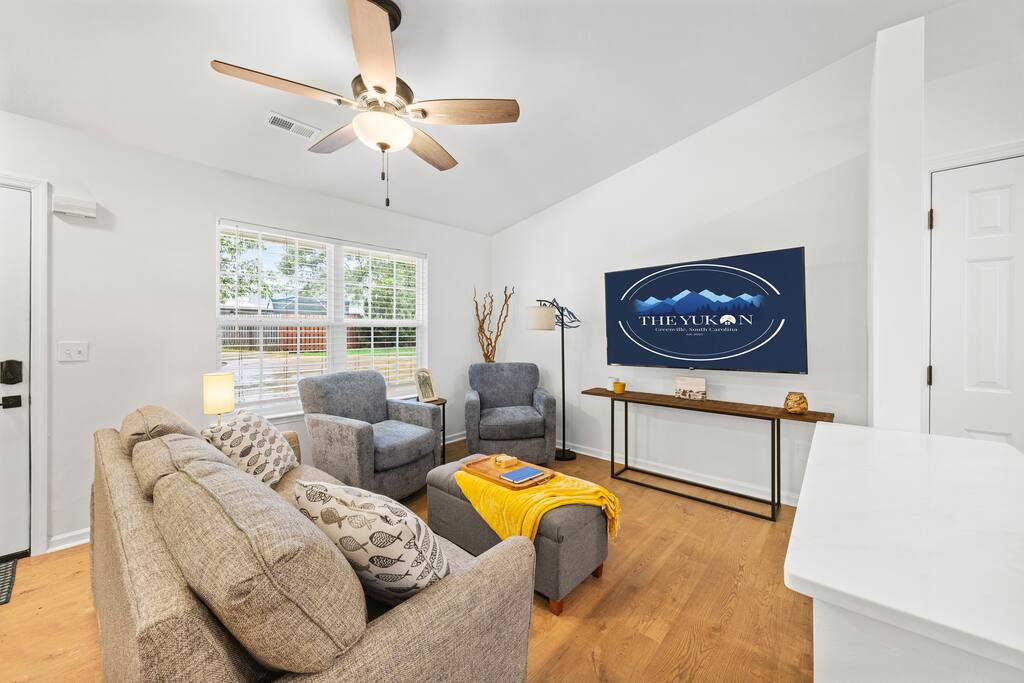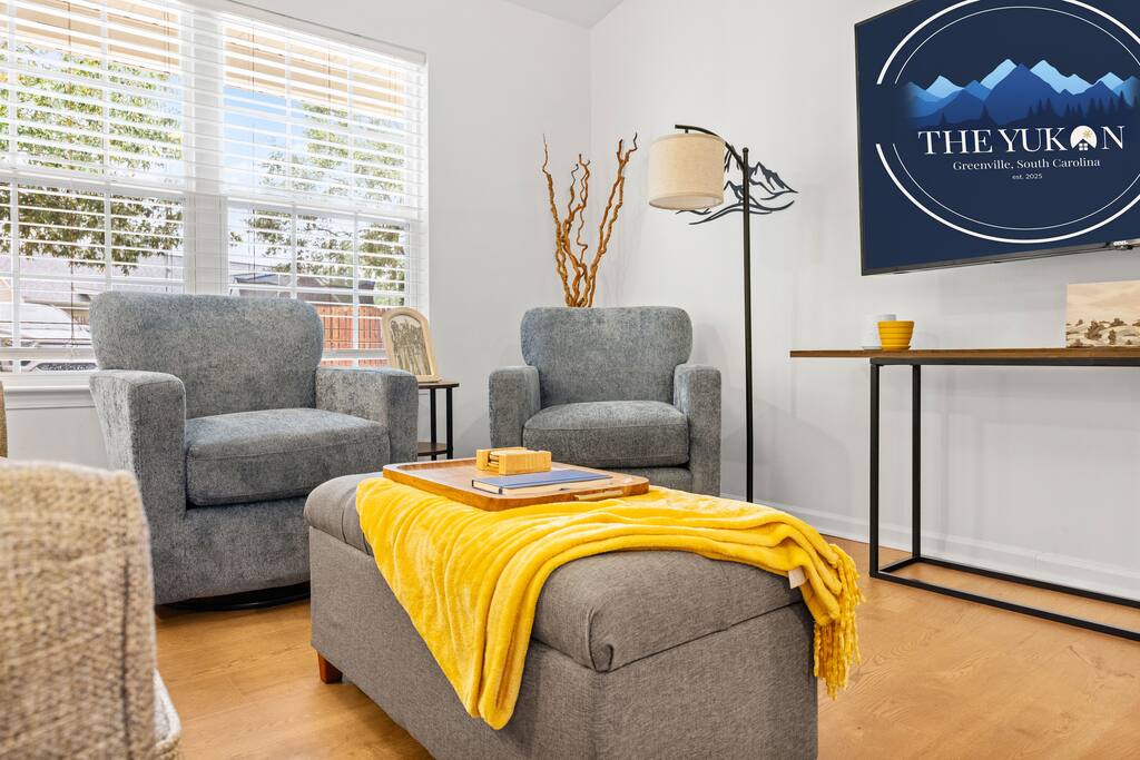 🏡 Welcome to The Yukon This is where Carolina comfort meets curated adventure. This 3-bedroom, 2-bath retreat sleeps 8 and features a fully fenced backyard with a private mini golf course, hot tub, fire pit, cornhole, and a triple covered-patio setup with a 65” outdoor TV, grilling station, and plenty of seating. Inside, you’ll find TVs in every room, stylish touches, a photo wall, and all the essentials for rest and recharge. Whether you’re here for a weekend getaway, a concert at Heritage Park, or just some well-earned stillness, The Yukon offers a complete Carolina retreat — designed for guests of all ages and built with purpose. 🛏️ Bedrooms & Sleeping Arrangements Primary Bedroom – King bed, 55” Roku Smart TV, dresser, nightstands, and private en suite bathroom Guest Bedroom 1 – Queen bed, 55” Roku Smart TV, dresser, nightstands Guest Bedroom 2 – Two twin beds, 55” Roku Smart TV, dresser, nightstand Living Room – Queen pull-out sleeper sofa with 65” Roku Smart TV Each room includes fresh linens, luggage racks, and Roku TVs in Guest Mode so your login details are automatically wiped after check-out. 🍽️ Kitchen & Dining Granite countertops & full-size stainless steel appliances 2-in-1 coffee maker (K-Cup + carafe) Blender for frozen drinks or smoothies Full spice rack and seasonings Full cookware, dishware, baking tools, and utensils Three-seat custom granite bar top for casual meals 🛁 Bathrooms 2 full bathrooms (one en suite, one shared) Full-size vegan, eco-friendly shampoo, conditioner, and body wash dispensers in both bathrooms Stocked with premium towels, oversized bath sheets, and dedicated makeup towels One hair dryer available for guest use 🧺 Laundry & Essentials Full-size stacking washer & dryer in-unit Starter detergent and laundry supplies included Iron and ironing board Cleaning supplies and broom closet access 🌿 Outdoor Oasis Triple 10x12 patio setup covered by a large 9x20 gazebo Outdoor 65” Roku TV with weather protection Hot tub with easy cover lift Gas grill with full utensil set Fire pit with seating (firewood not provided — BYO) S’mores kits provided for every stay Mini golf course, cornhole set, and beautiful hardscaping Outdoor lighting for evening ambiance Fully privacy-fenced backyard — secure for pets and kids 📱 Entertainment & Tech Roku Smart TVs in every room, including outdoor patio High-speed Wi-Fi Guest Mode automatically clears your TV logins Board games and backyard activities 🐾 Pet-Friendly with Fee $149 base pet fee + $49 per additional pet Fully fenced yard Water bowls and pet-friendly yard features Please clean up after pets and keep them off the furniture ⏱️ Thoughtful Add-Ons Early check-in available for a fee, pending availability S’mores kits provided standard Additional surprise touches to make your stay easy, welcoming, and memorable 📍 Location Highlights 20 min to Downtown Greenville (Falls Park, Fluor Field, Bon Secours Arena) 15 min to Simpsonville, Mauldin, Heritage Park & CCNB Amphitheater 5 min to Conestee Nature Preserve & Southside Park 20 min to GSP International Airport Easy access to I-85, I-185, I-385 30–45 min to Paris Mountain, Furman, Clemson, Wofford, Anderson 1.5–2.5 hr day trips to Asheville, Charlotte, Columbia, Atlanta 🧳 Ideal For Families Pet owners Groups of friends Couples Concert-goers Weekend getaways & workcations This isn’t just a stop — this is The Yukon. The flagship awakened.