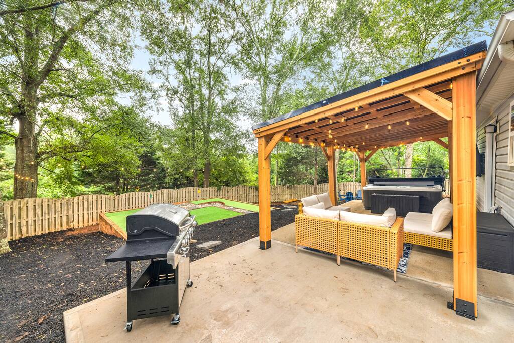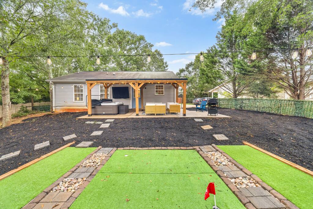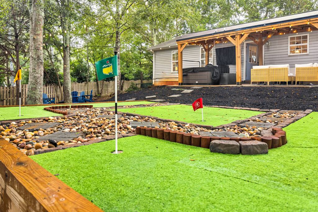 Escape to The Yukon: an outdoor oasis just 15 minutes from Downtown Greenville and designed for fun, comfort, and connection. Enjoy a private mini golf course, hot tub, fire pit, cornhole, grill, triple patio with a 65-inch TV and complimentary 'smores kits! Inside, find Roku Smart TV's in every room, a photo wall, and space for 8 across 3 bedrooms and 2 baths. Fully fenced and pet-friendly, The Yukon is perfect for families, groups, or couples looking to relax, recharge, and make memories.