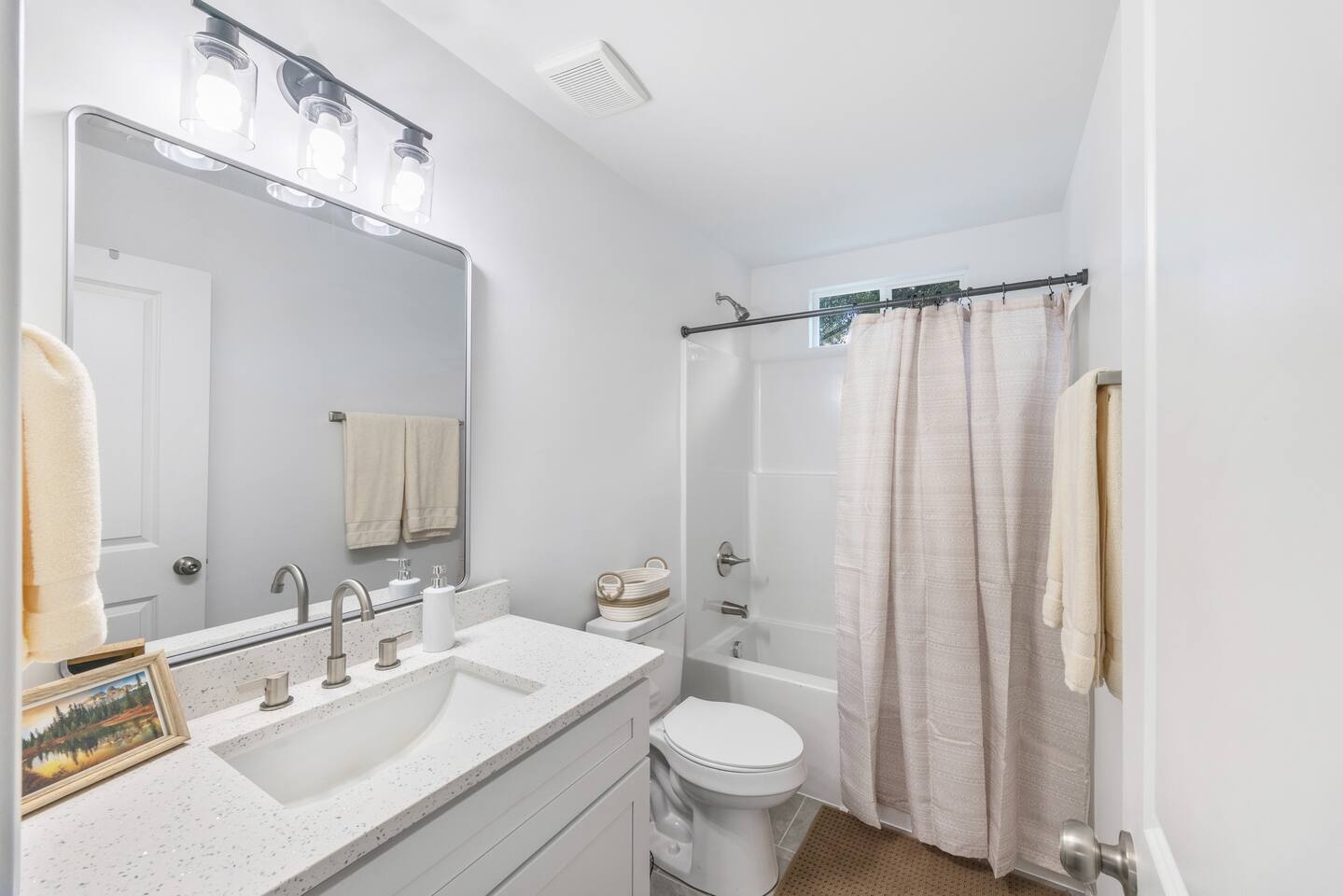 WHY GUESTS LOVE THE JUNCTION ✔ Unique vintage-meets-modern design with local character ✔ Stand-up arcade, vinyl record player & popcorn machine ✔ Cozy fire pit lounge with café lights ✔ TVs in every bedroom + living room ✔ Fully fenced yard — pet friendly ✔ BYOB cocktail bar for easy nights in ✔ Clean, comfortable setup with thoughtful touches ✔ Quick access to downtown Spartanburg, colleges & parks The Junction is fun, relaxed, and easy — a home that doesn’t try too hard and doesn’t miss the details. THE SPACE ✔ Sleeps up to 8 across 3 bedrooms + sleeper sofa ✔ Vintage-inspired design with modern updates ✔ Roku Smart TVs in every bedroom + living room ✔ Professionally cleaned with fresh linens ✔ Pet-friendly with fenced yard ✔ Easy, comfortable layout for families & groups BEDROOMS & SLEEPING ✔ Bedroom 1: Queen bed + Roku Smart TV ✔ Bedroom 2: Queen bed + Roku Smart TV ✔ Bedroom 3: Two twin beds + Roku Smart TV ✔ Living Room: Pullout sleeper sofa ✔ Fresh linens provided for every stay ✔ Thoughtful touches for rest and recharge LIVING & ENTERTAINMENT ✔ Stand-up arcade with classic favorites ✔ Vinyl record player + curated album collection ✔ Nostalgic popcorn machine ✔ Roku Smart TVs throughout ✔ High-speed Wi-Fi Built for laid-back nights, friendly competition, and easy downtime. KITCHEN & DINING ✔ Fully stocked kitchen with cookware, bakeware & utensils ✔ Full-size fridge, oven, stovetop & microwave ✔ Classic drip coffee maker ✔ Toaster & basic pantry essentials ✔ BYOB cocktail bar with glassware, shaker & tools ✔ Popcorn machine for movie nights BATHROOMS & ESSENTIALS ✔ Two full bathrooms ✔ Shampoo, conditioner & body wash provided ✔ Bath towels, washcloths & bath mats ✔ Hair dryer ✔ Iron & ironing board OUTDOOR SPACE ✔ Fully fenced backyard ✔ Fire pit with seating ✔ Café string lights for evening ambiance ✔ Covered front porch ✔ Small covered back deck ✔ Outdoor seating ✔ Gas grill A simple, cozy outdoor setup that’s perfect after a day downtown. LAUNDRY & CLEANING ✔ Washer & dryer ✔ Laundry detergent provided ✔ Cleaning supplies available ✔ Broom, mop & vacuum PET-FRIENDLY (WITH FEE) ✔ Well-behaved dogs welcome ✔ Fully fenced yard ✔ $119 non-refundable pet fee per pet SAFETY & ACCESS ✔ Keyless entry / smart lock ✔ Smoke & carbon monoxide detectors ✔ Fire extinguisher & first-aid kit LOCATION HIGHLIGHTS ✔ 3 min to Downtown Spartanburg ✔ 5 min to Wofford College & Fifth Third Park ✔ 7 min to Converse University ✔ 9 min to USC Upstate ✔ 22 min to GSP International Airport ✔ 35 min to Downtown Greenville ✔ Easy trips to Asheville & Charlotte IDEAL FOR ✔ Families ✔ Couples ✔ Friends & weekend trips ✔ Pet owners ✔ Campus visits ✔ Relaxed Upstate getaways IMPORTANT NOTES ✔ Professionally maintained with same-day turnovers ✔ Designed for comfort, cleanliness & respectful stays ✔ Not a party or event property ✔ Please review house rules prior to booking The Junction is where stories cross — and new ones begin. Comfortable. Nostalgic. Easy to love.