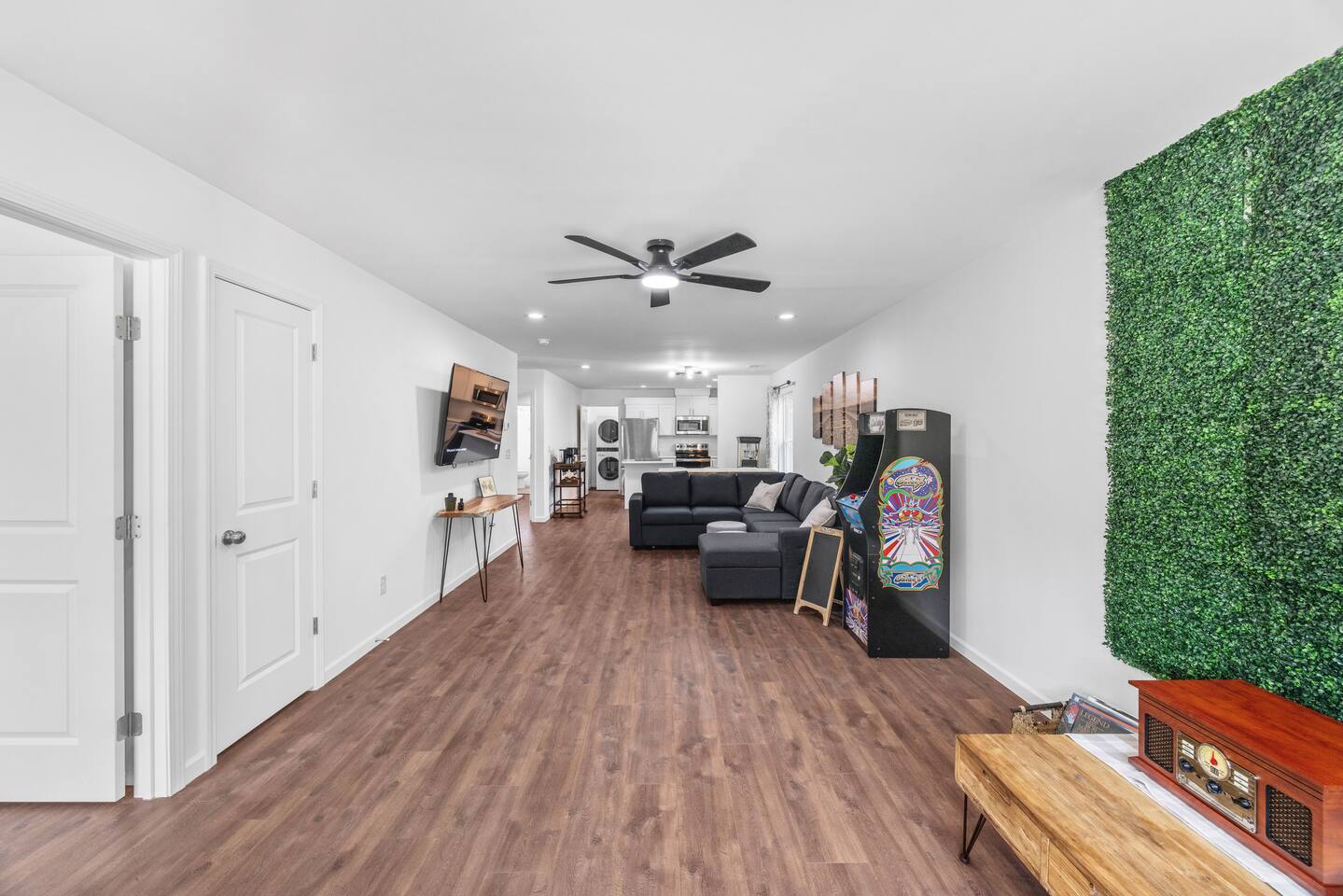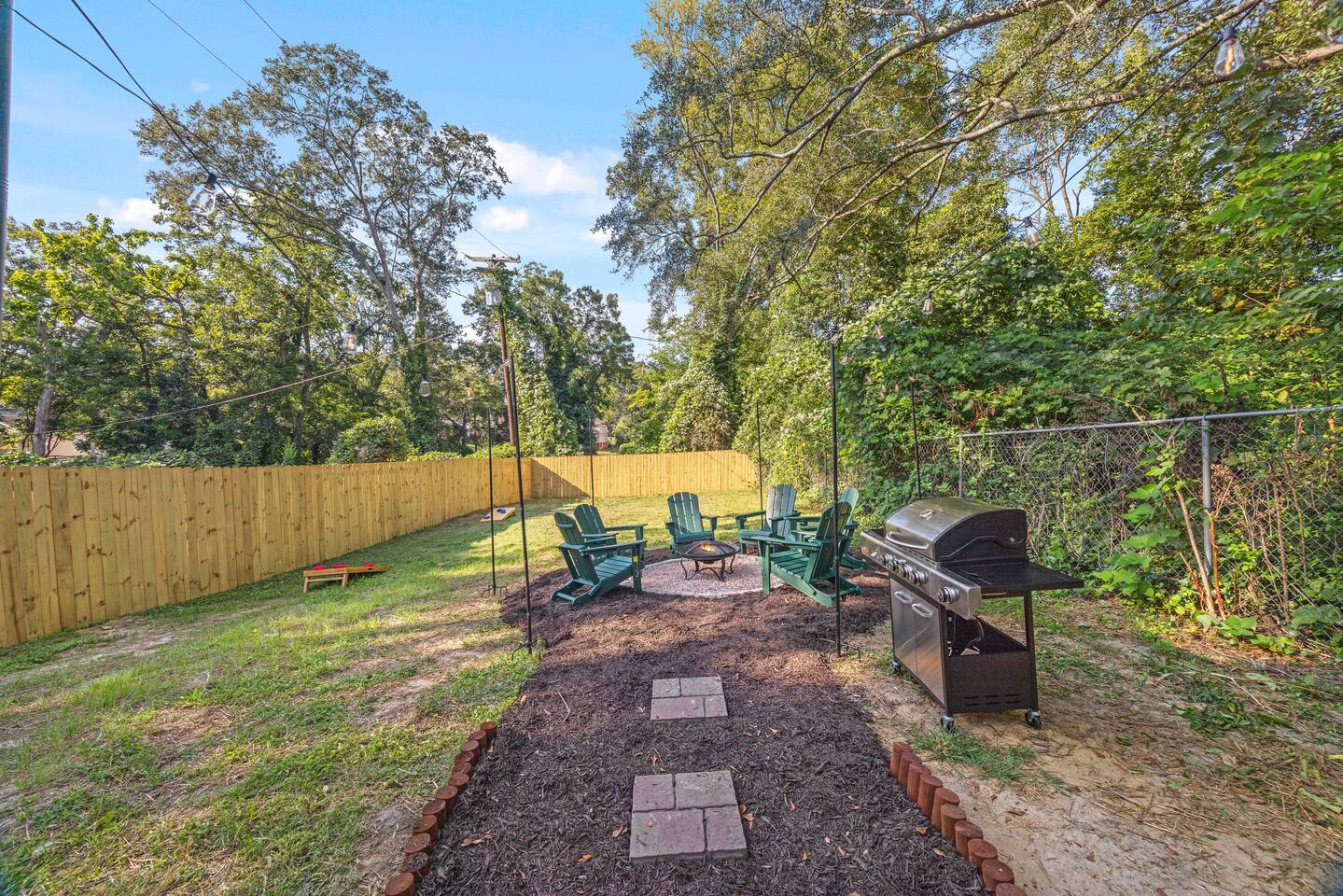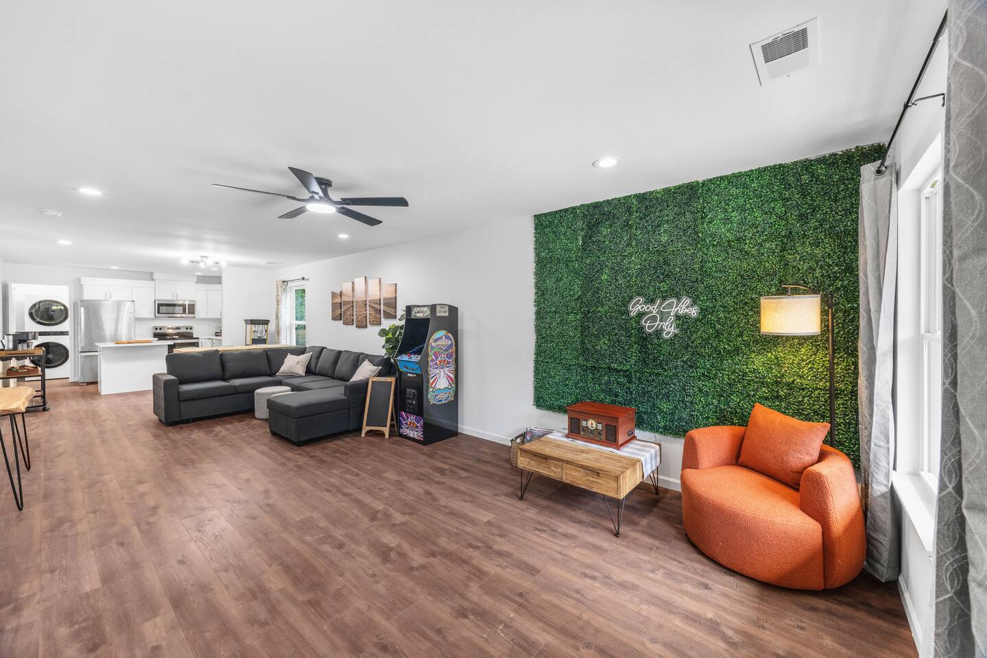 Guests have full private access to the entire home, including all indoor and outdoor spaces. You’ll enjoy: 3 fully furnished bedrooms + 2 full bathrooms Living room with sleeper sofa and Roku Smart TV Full kitchen, stocked with essentials + popcorn machine + BYOB cocktail bar Stand-up arcade + vinyl record station Laundry area with washer and dryer Fully fenced backyard with fire pit and café lights Covered front porch and back deck Free parking in the driveway (2 dedicated spaces, room for more) You’ll check in via smart lock — your unique code will be sent before arrival. No shared spaces or on-site hosts — the entire experience is yours to enjoy.