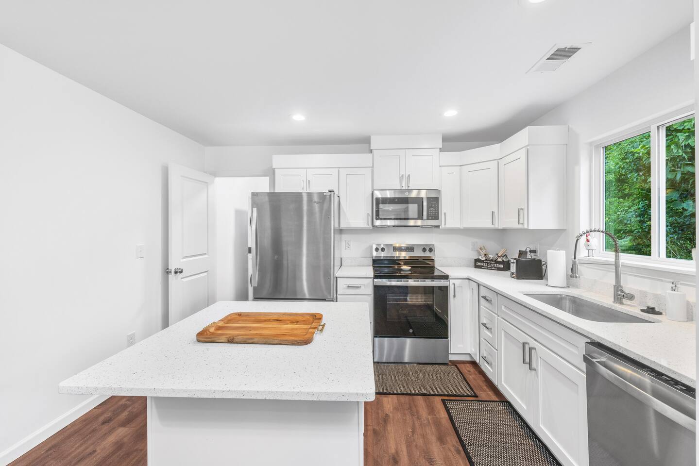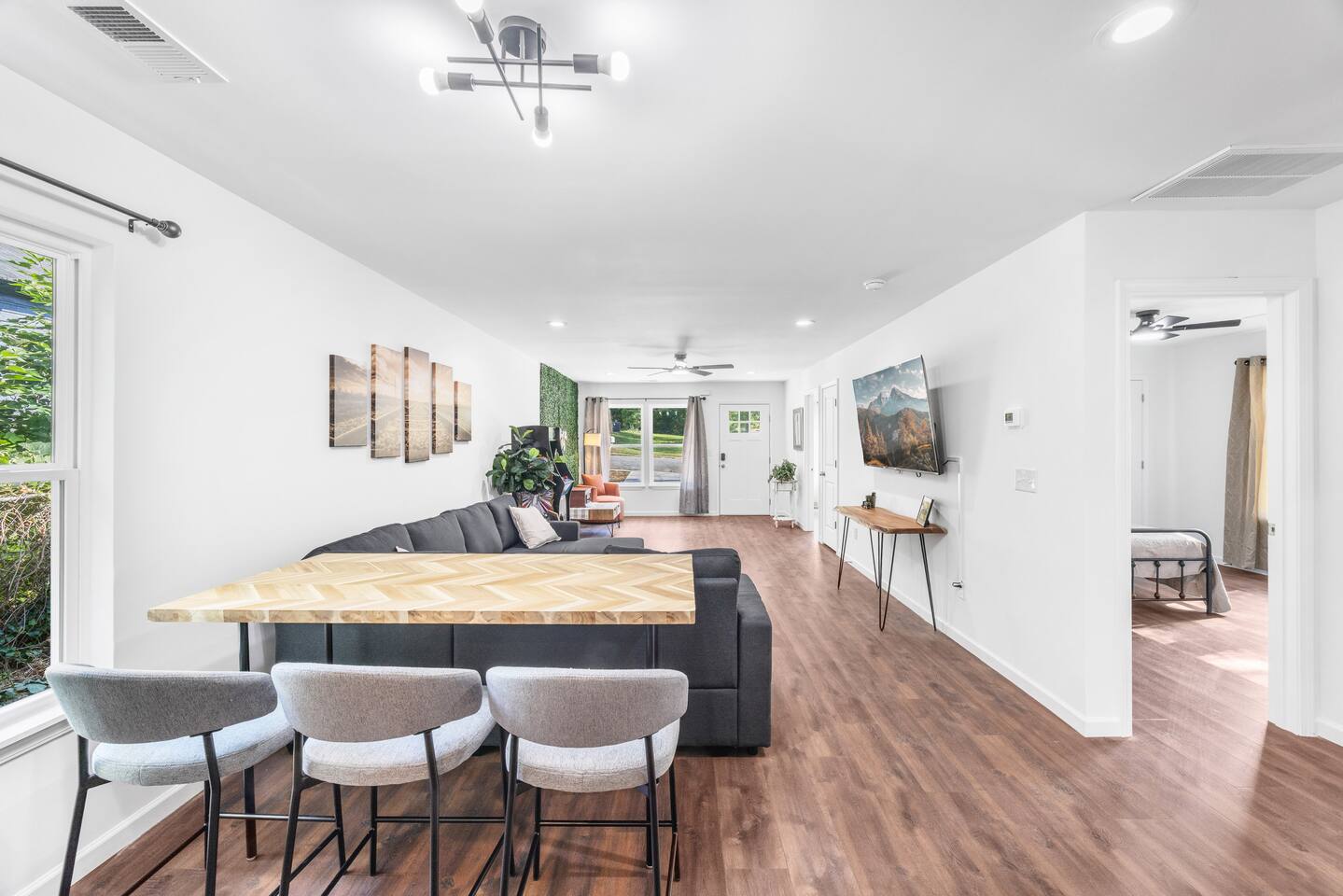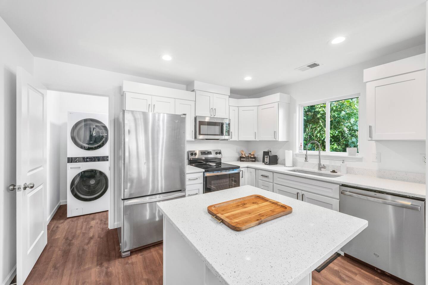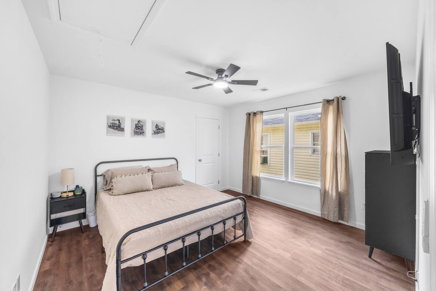 Guests have full private access to the entire home, including all indoor and outdoor spaces. You’ll enjoy: 3 fully furnished bedrooms + 2 full bathrooms Living room with sleeper sofa and Roku Smart TV Full kitchen, stocked with essentials + popcorn machine + BYOB cocktail bar Stand-up arcade + vinyl record station Laundry area with washer and dryer Fully fenced backyard with fire pit and café lights Covered front porch and back deck Free parking in the driveway (2 dedicated spaces, room for more) You’ll check in via smart lock — your unique code will be sent before arrival. No shared spaces or on-site hosts — the entire experience is yours to enjoy.