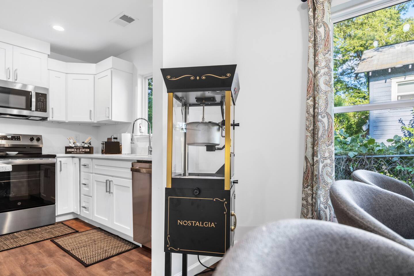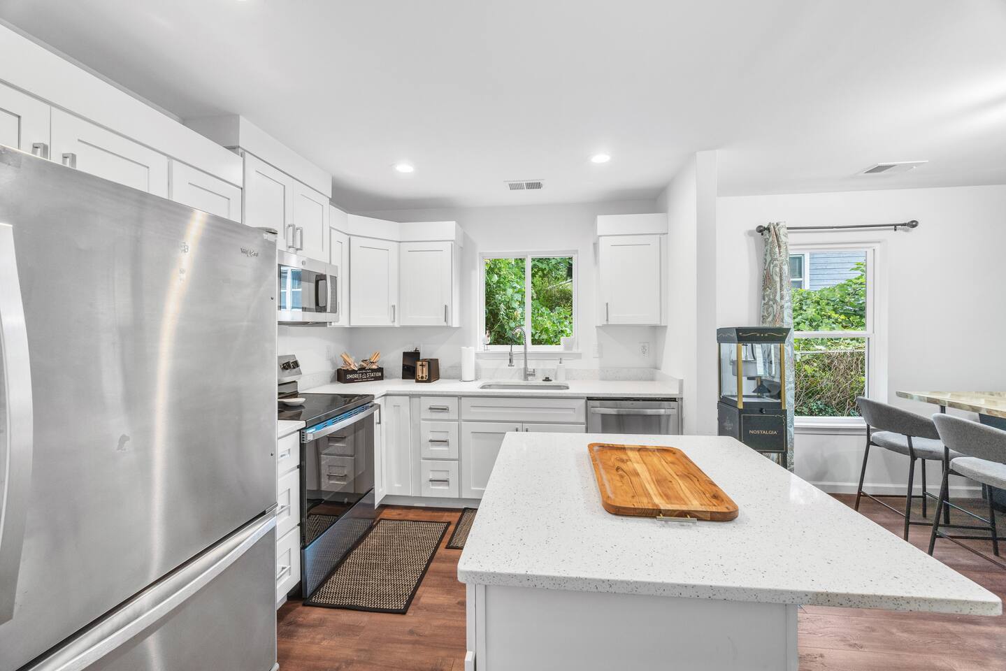 Welcome to The Junction — a 3BR/2BA Spartanburg stay where vintage charm meets modern comfort. Just 3 minutes from downtown, this pet-friendly home sleeps 8 and features a stand-up arcade, vinyl record player, popcorn machine, cozy fire pit lounge under café lights, and a BYOB cocktail bar. With Roku TVs in every room, a fully stocked kitchen, and a relaxed, nostalgic vibe, The Junction blends personality, comfort, and play in a reimagined rail town hub.